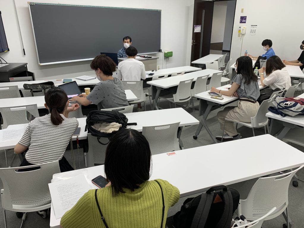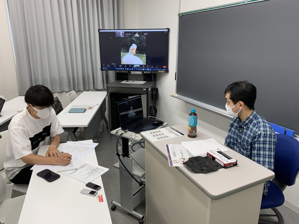 学生たちは、こうした野々村さんの視覚障害当事者としての活動を理解するために、質問項目を考え、当日に臨みました。当日は、柴田大地君を中心とした野々村班のメンバーがインタビューを担いました。野々村さんからは、権利要求活動において重要なのは、国に対して要望書を提出することよりも、シンポジウムなどで一般市民と対話したり、一般市民が視覚障害者に直接かかわることのできる取り組みを行なったりすることが重要だと話されました。